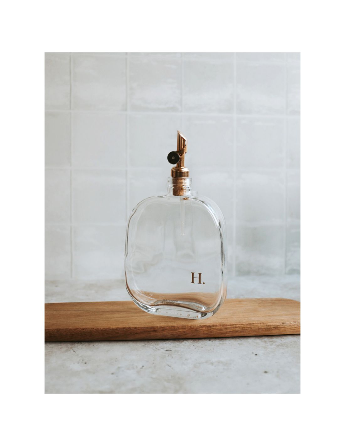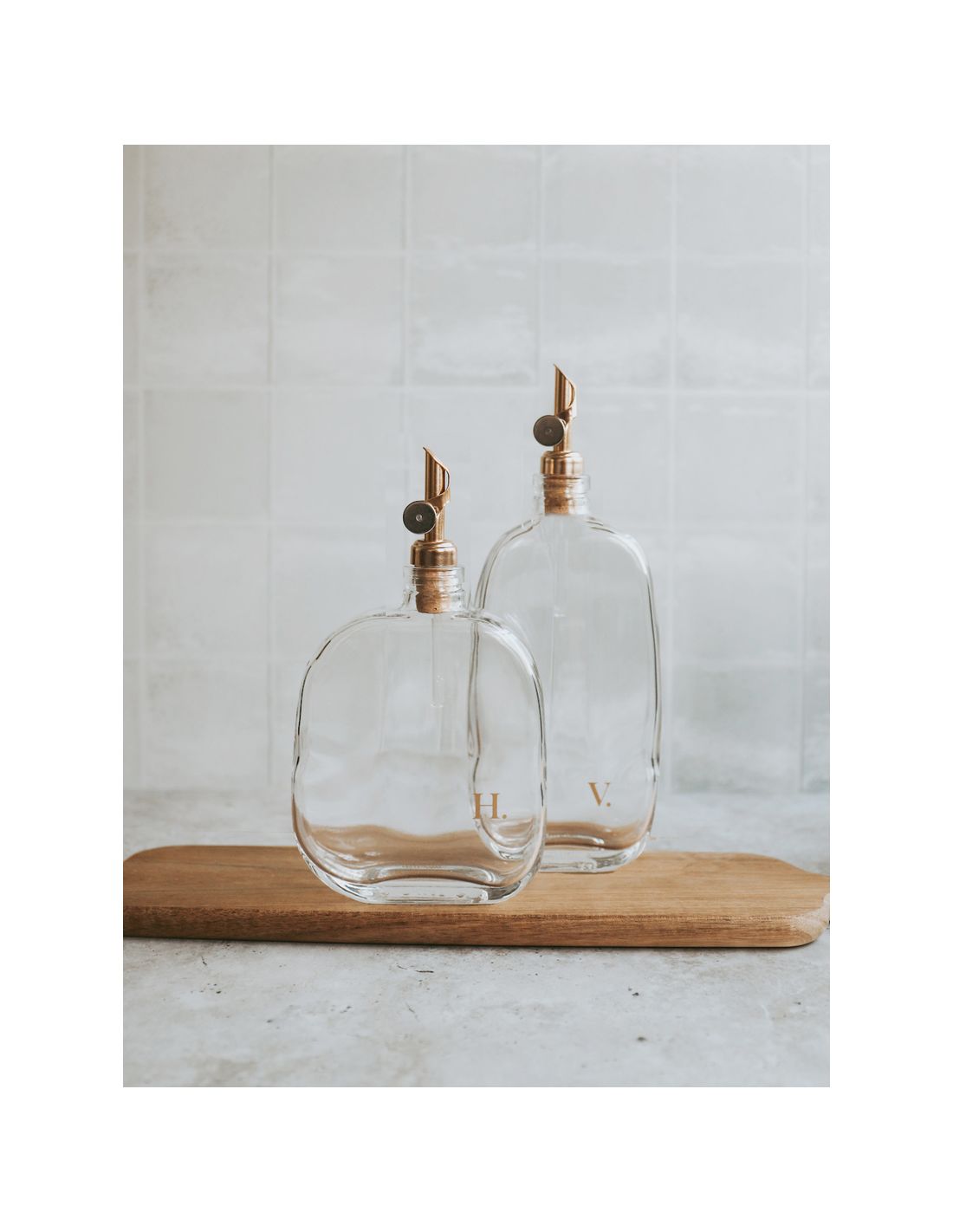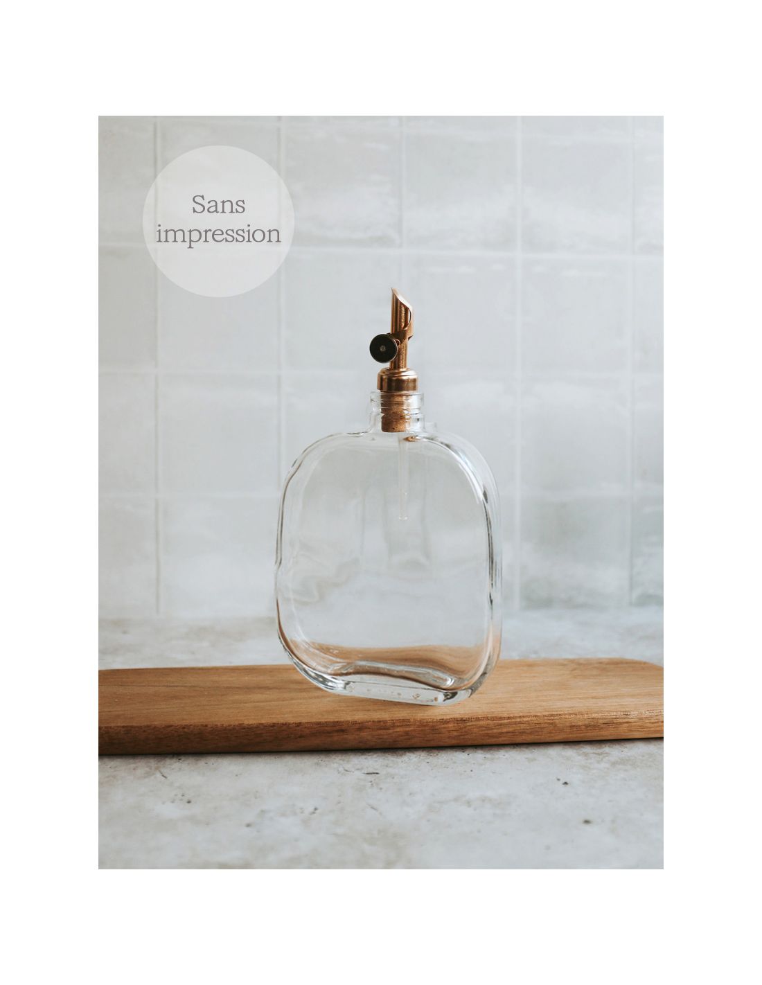 Sublimez votre cuisine avec notre bouteille d'Huile signature, une pièce unique au design organique et asymétrique. Cette création exclusive allie élégance et fonctionnalité pour sublimer votre huile d'olive favorite.