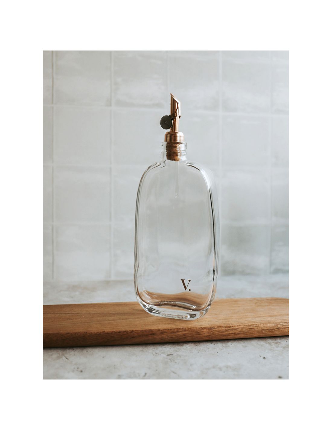 Découvrez notre bouteille de Vinaigre à la silhouette élancée et asymétrique, un véritable objet d'art qui sublime votre cuisine au quotidien.